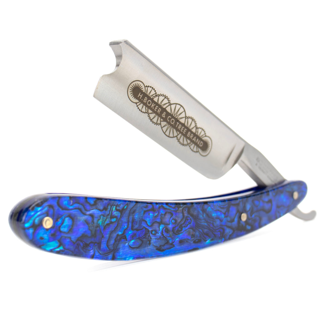 Boker is one of the world's premier cut throat razor manufacturing companies based in Solingen, Germany. This exceptional razor boasts a robust 7/8-inch wide blade, complete with a Barber's Notch. Paua, unlike typical abalones, are crustaceans exclusive to the pristine coastal waters of New Zealand, and they have adorned the... Read more